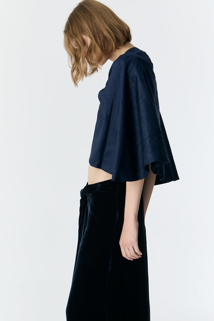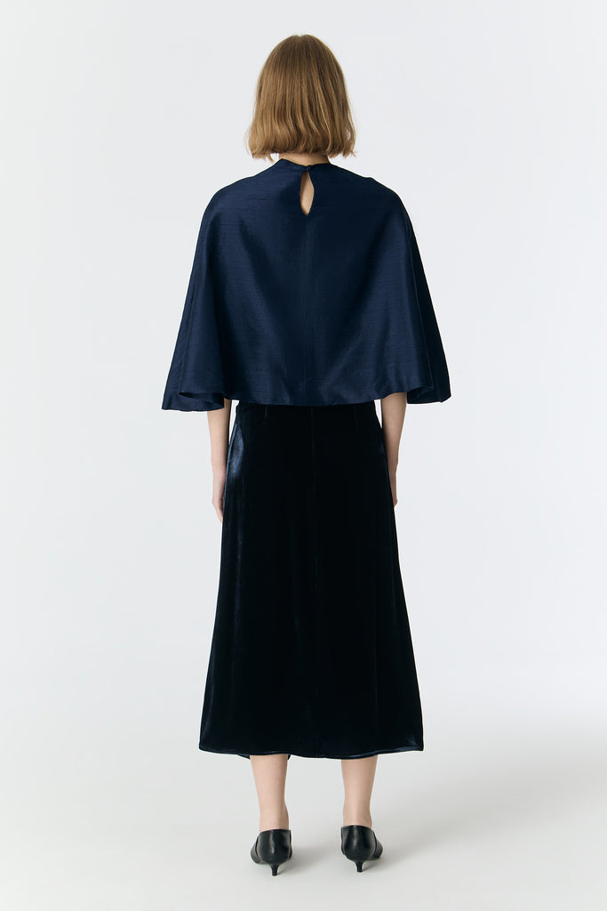 AYSE SILK SHANTUNG SIGNATURE CAPE — DEEP NAVY